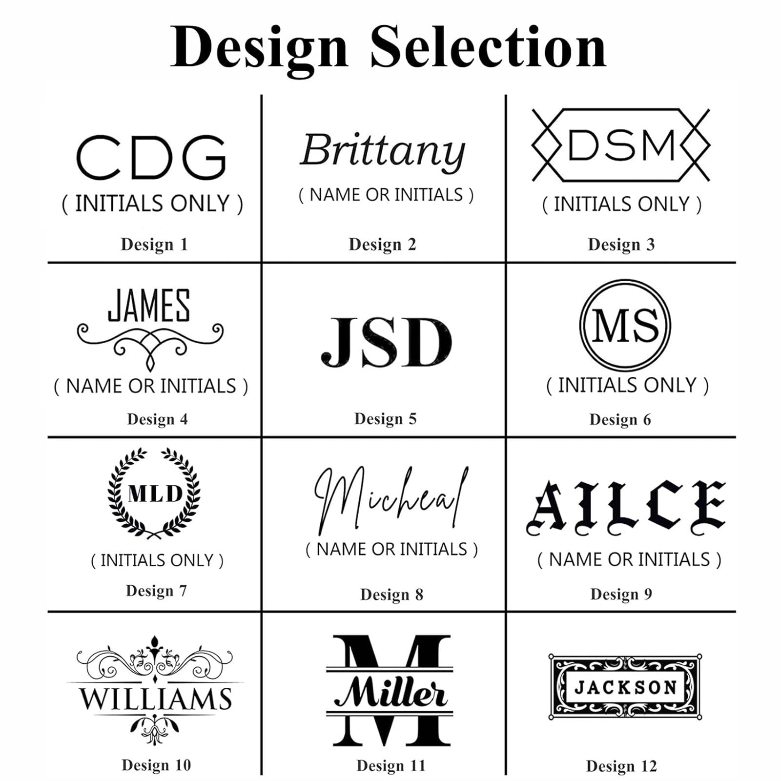 个性化:支持 12 种自定义样式,可选择在三个选定位置之一激光雕刻姓名或首字母缩写,文本清晰持久。