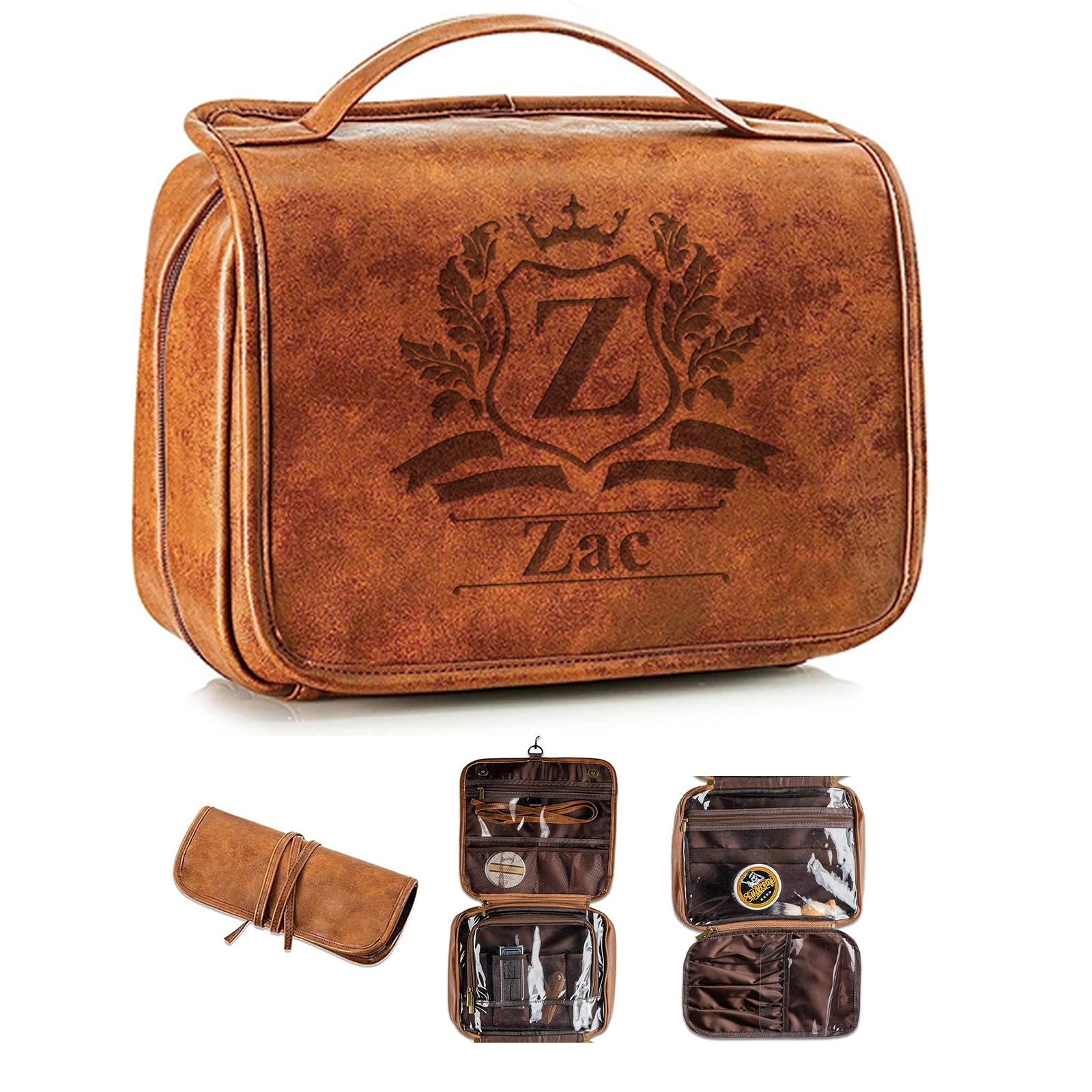 3-in-1 Large Personalized PU Leather Toiletry Bag For Men