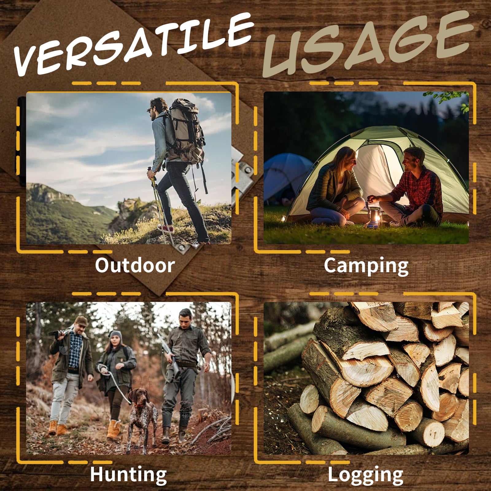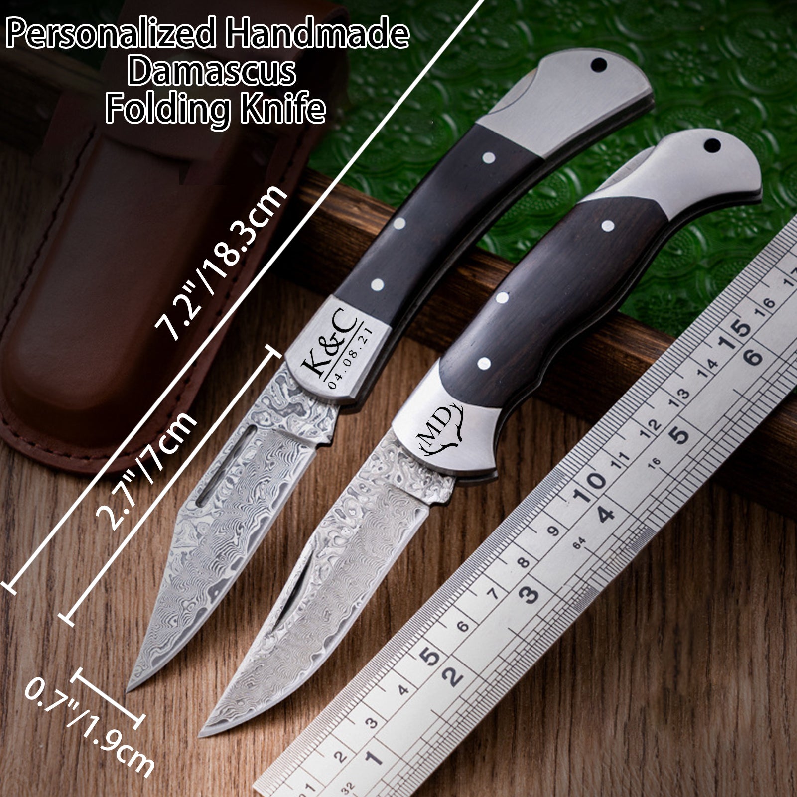 【Versatile Usage】Our customizable folding knife is both practical and elegant, folding for easy storage and equipped with a PU leather sheath for portability. Perfect for dining, outdoor activities, camping, hunting, traveling, and even woodcutting.