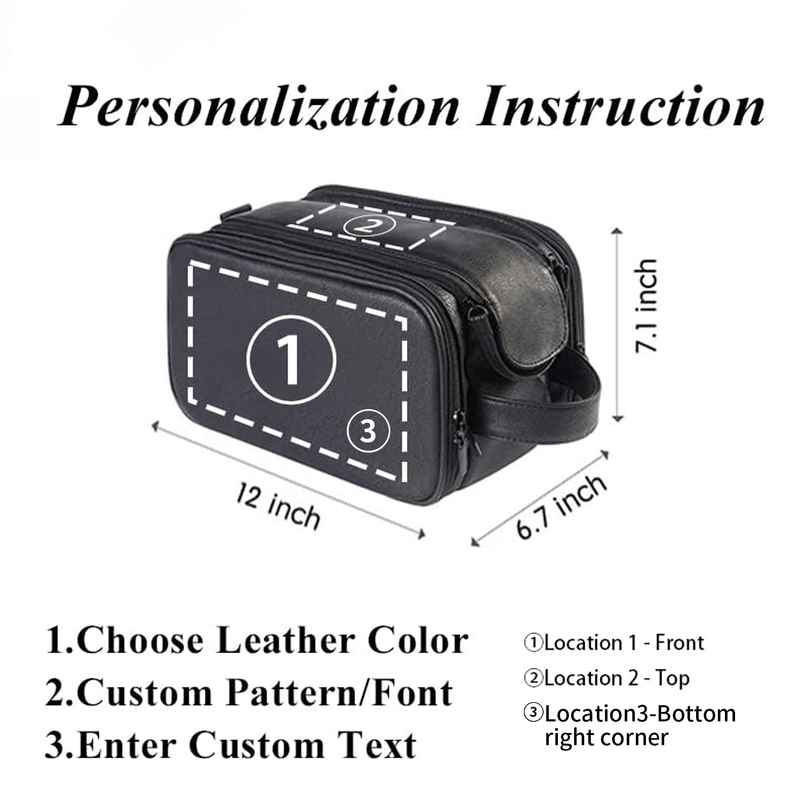 【Personalized Customization】This leather toiletry bag offers personalized customization. 1, you need to select the color and custom style of the leather, select the customization location, and finally enter your name, and we will create a unique leather toiletry bag for you.