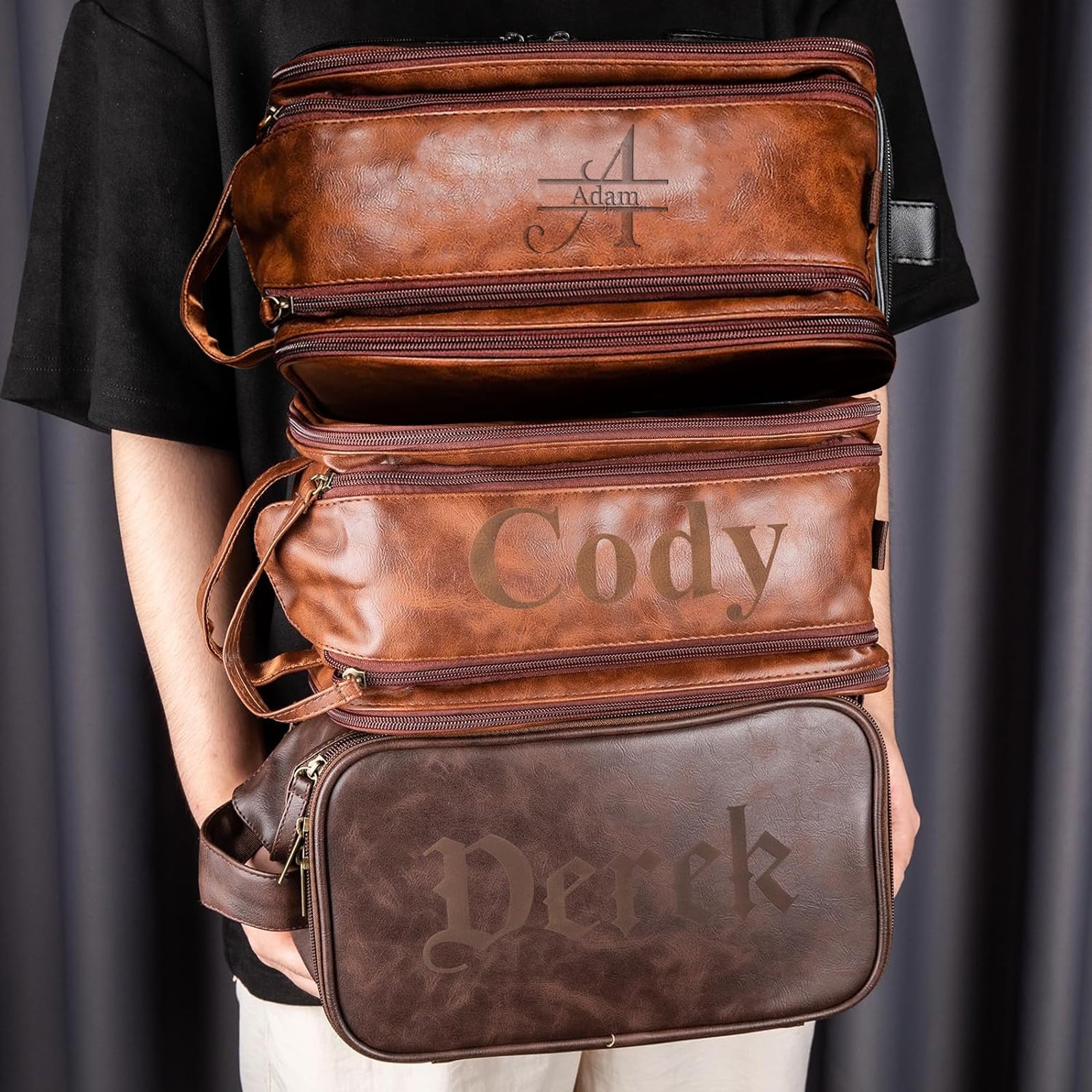 【Fashionable Design】This toiletry bag adopts a double zipper design and is engraved with your name through laser engraving process, which will greatly show your personality and is the best choice for modern men's toiletry bag.