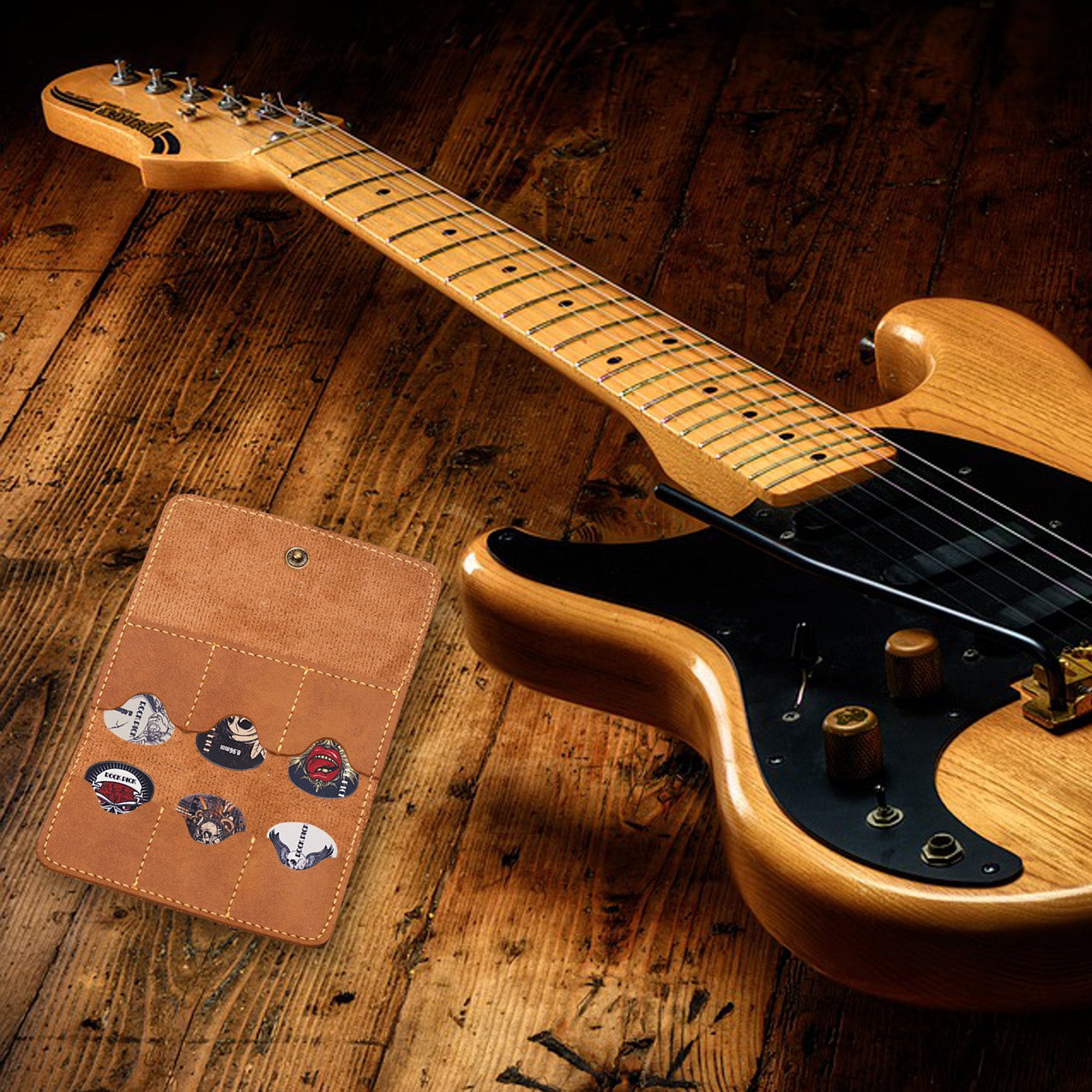 【Exquisite Design】Fashionably compact design easily fits into guitar cases or gig bags. Featuring a fold-over flap with a snap closure to securely hold your picks in place, accommodating up to 6 standard guitar picks, making it easy to store spares during performances or practice sessions.