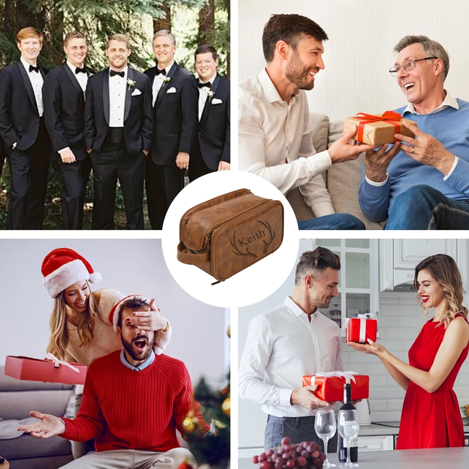 GIFT THAT STANDS OUT: Elevate your gifting game with our personalized leather Dopp kit for men. Perfect for husbands, sons, fathers, friends, or groomsmen, this fashionable and spacious toiletry bag is not just practical but also memorable. Each bag can be customized with the recipient's name or initials through expert laser engraving.