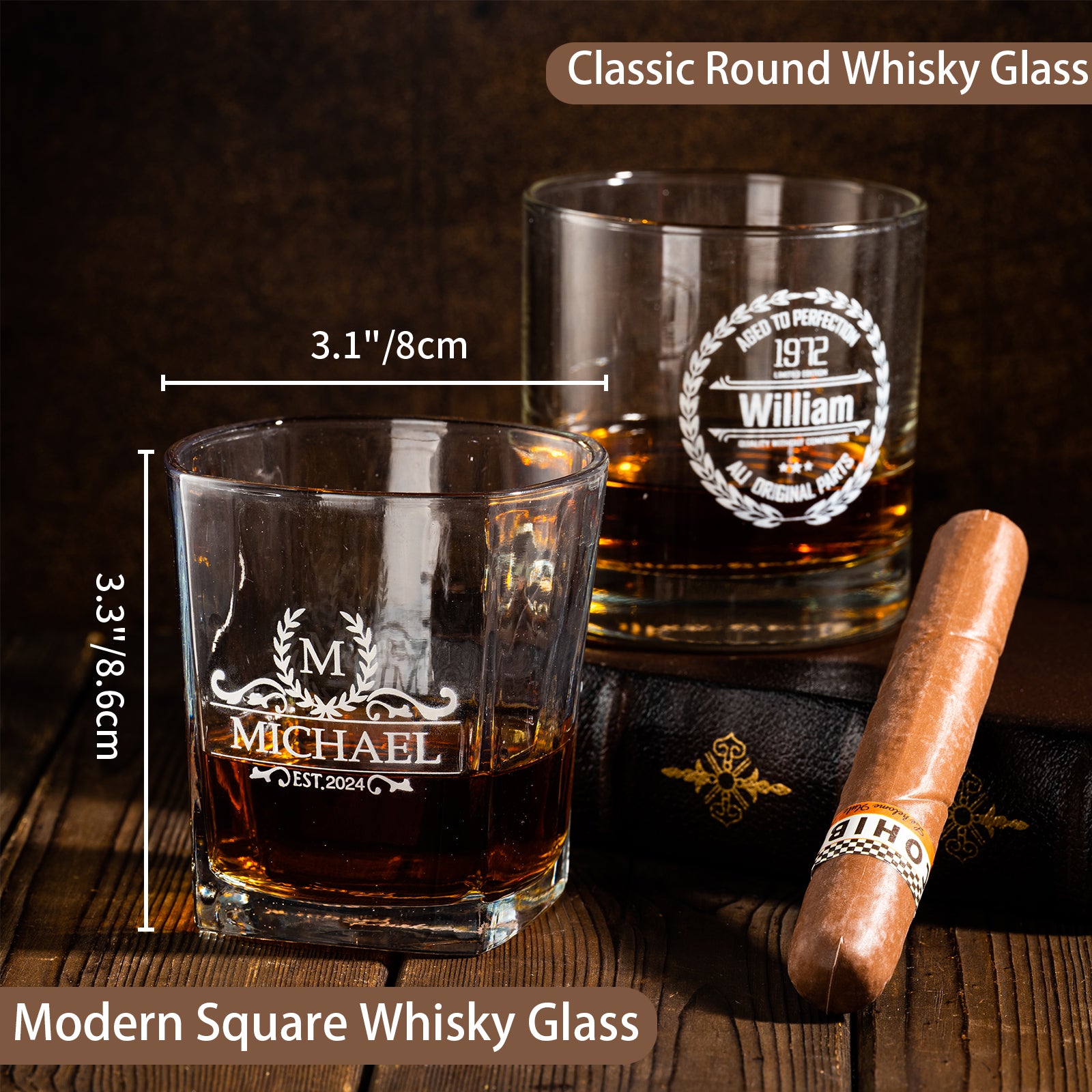 【Crafting Elegance】These exquisite personalized whiskey glasses are handcrafted to the highest standards, promising cherished memories and sophisticated drinking experiences for years to come. The glass thickness helps maintain the coolness of spirits.